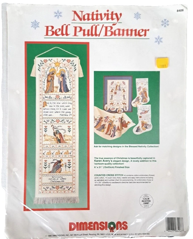 Anuncio nuevoCarillones de viento Dimensions 1998 punto de cruz contado Santa primera Navidad juntos