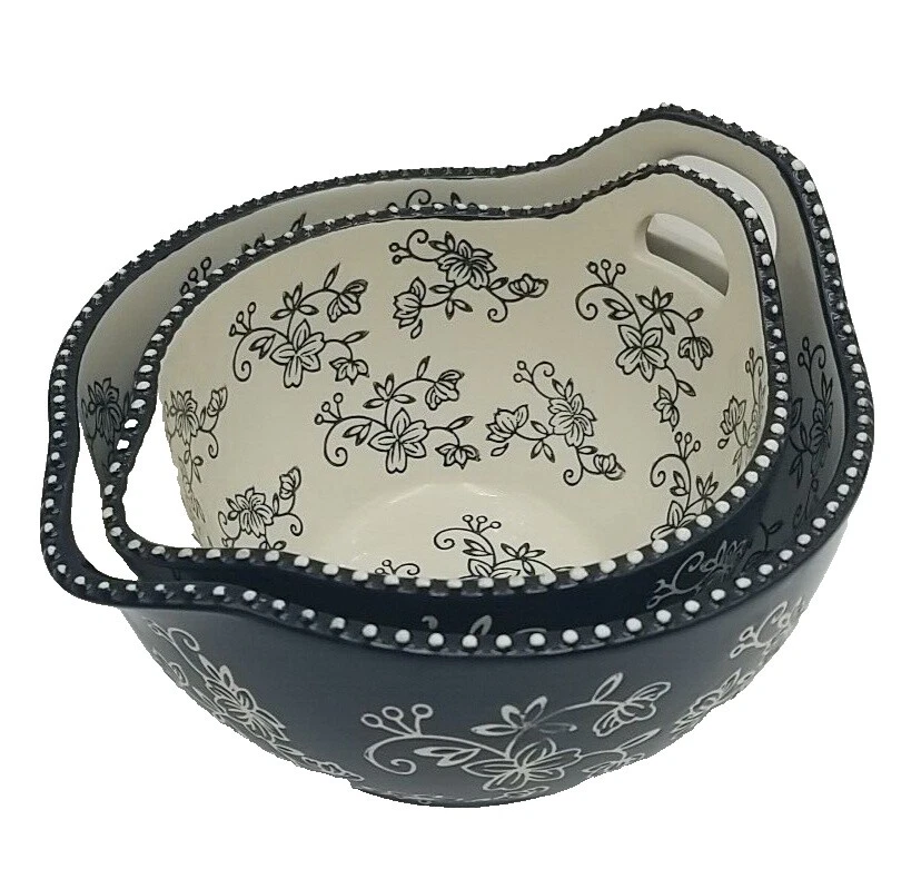 4 cuencos de sopa/cereal con volantes de encaje floral negro Temptations By Tara de 7,5" de diámetro